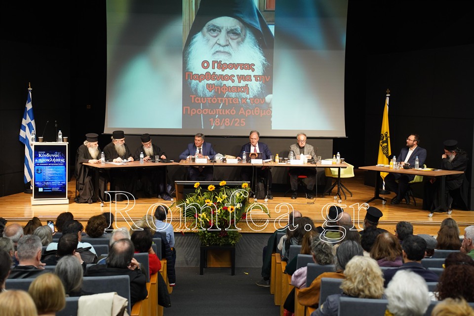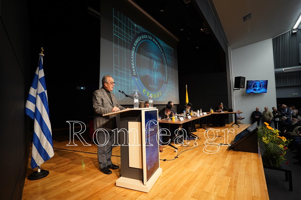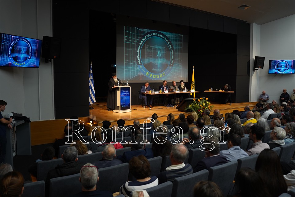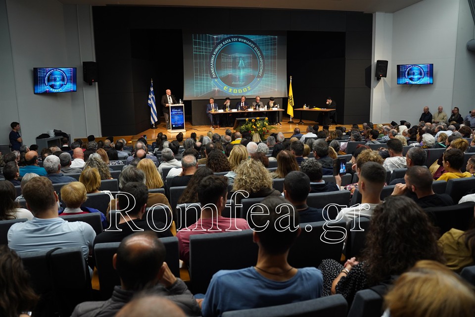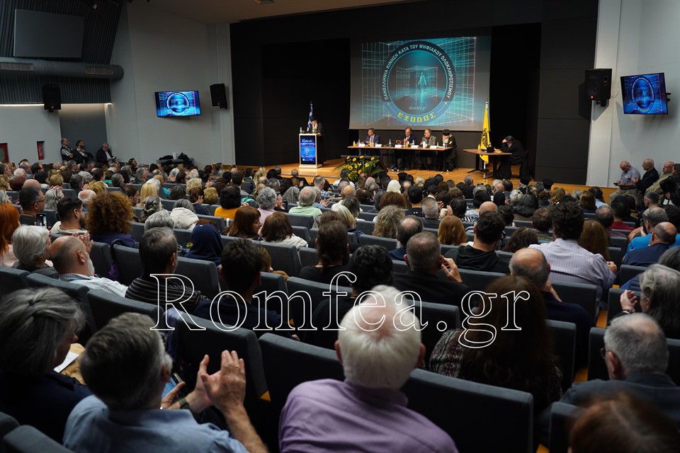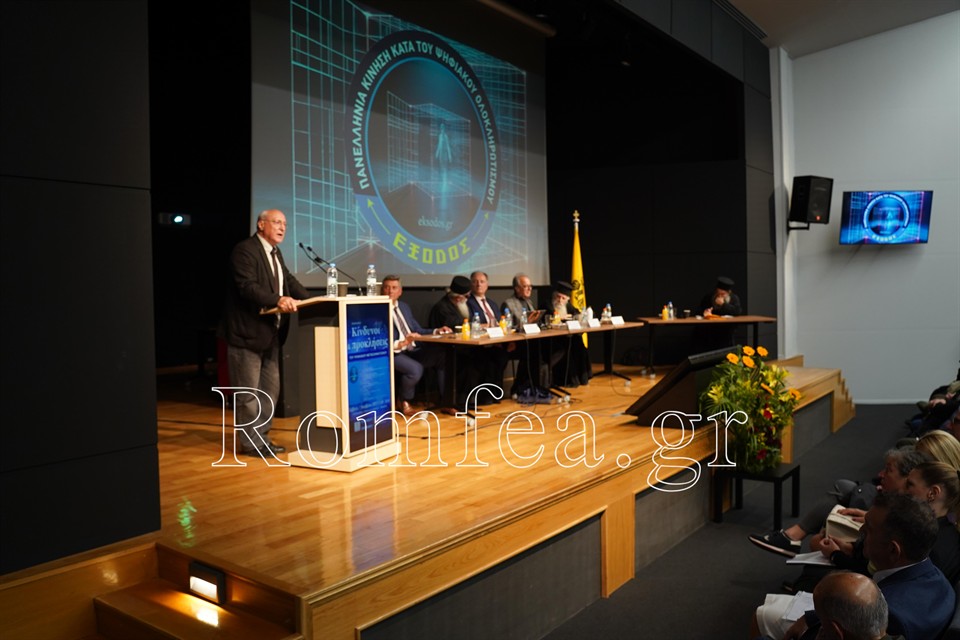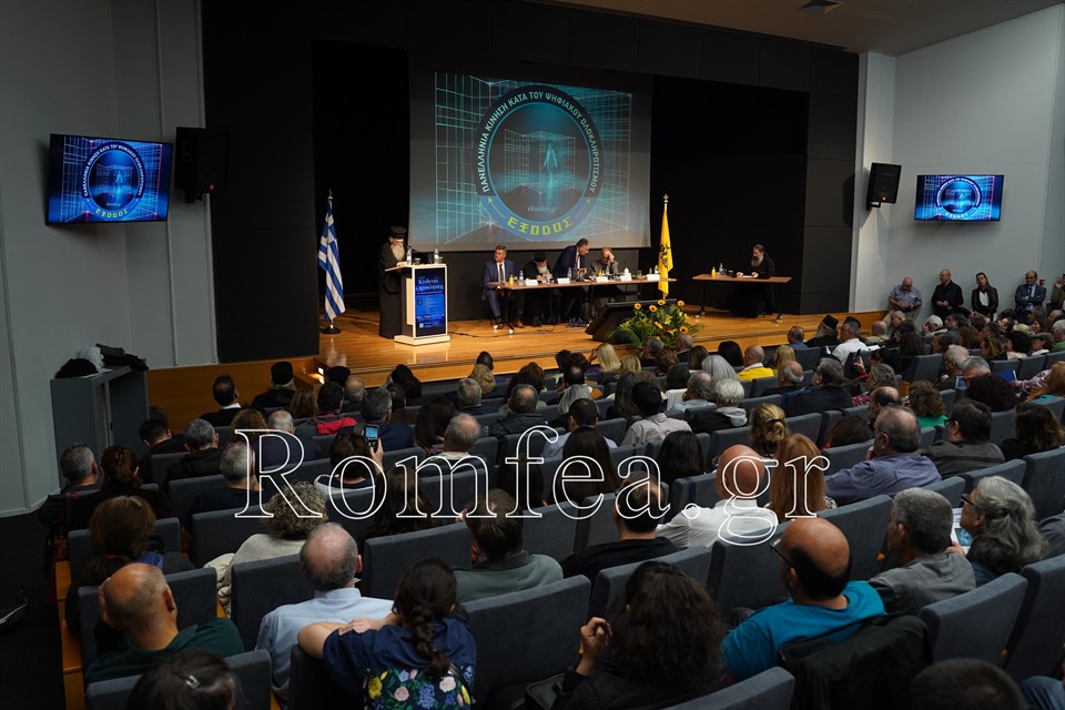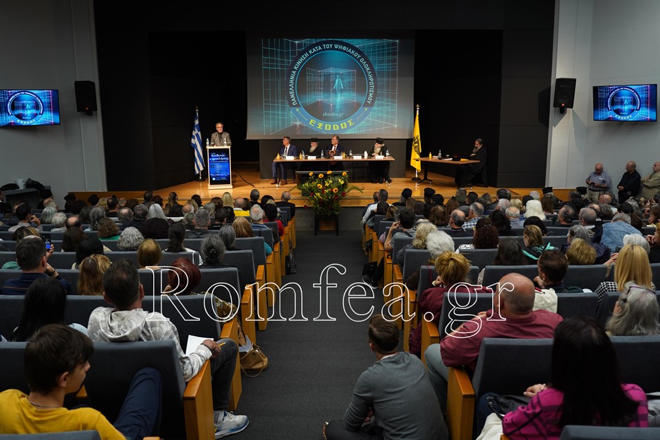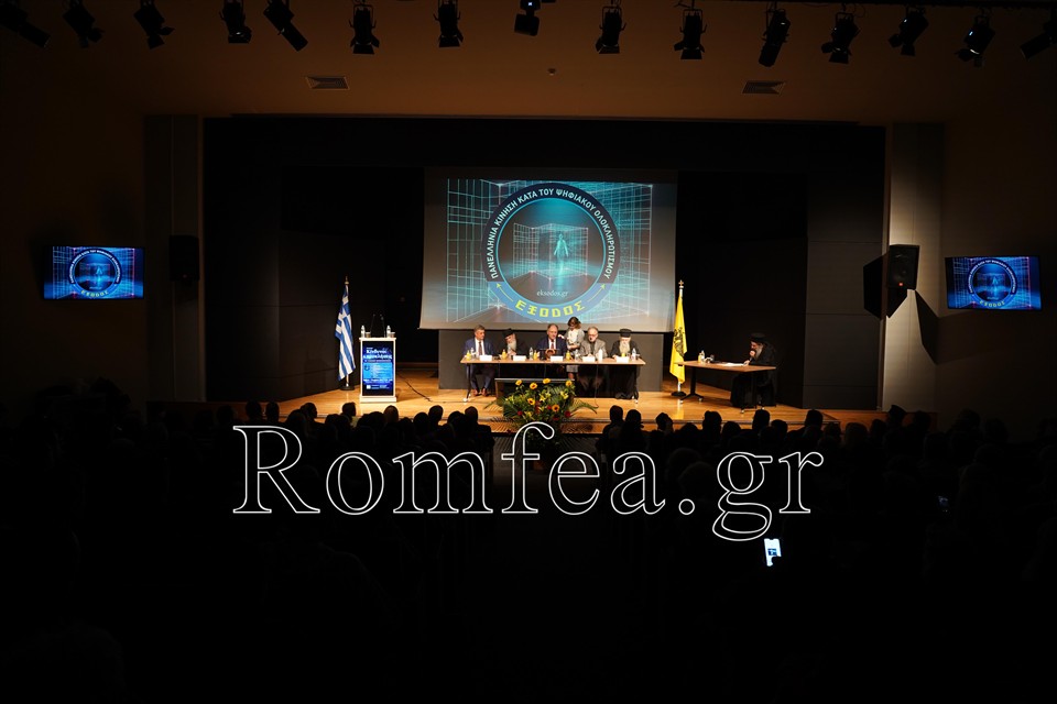 Με συμμετοχή πλήθους κόσμου που γέμισε ασφυκτικά την αίθουσα, οι εισηγητές παρουσίασαν με τεκμηριωμένο λόγο τους πνευματικούς και κοινωνικούς κινδύνους που κρύβονται πίσω από τον καθολικό ψηφιακό μετασχηματισμό του Κράτους, εναντίον του οποίου η «ΕΞΟΔΟΣ» διεξάγει συλλογή υπογραφών.