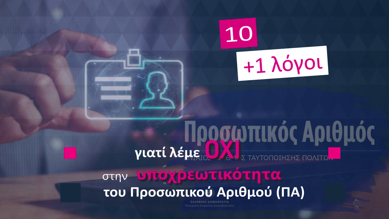 •Είμαστε αντίθετοι στην υποχρεωτική παραλαβή Προσωπικού Αριθμού και ηλεκτρονικής ταυτότητας.